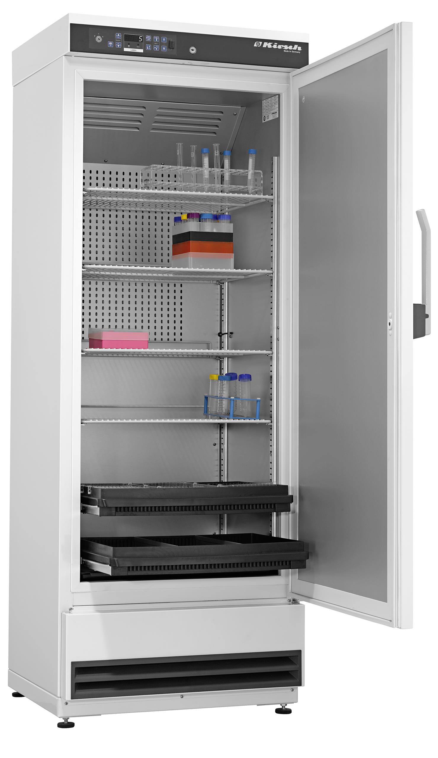 Voor de langdurige opslag adviseren wij u de medicijnkoelkast van het merk Kirsch. Deze farmaceutische koelkast wordt gebruikt voor de opslag van verschillende medicijnen die koel moeten worden bewaard. De Kirsch medicijnkoelkast wordt geleverd met uittrekbare lades en een rooster. De uittrekbare lades en rooster kunnen gemakkelijk op verschillende hoogtes worden geplaatst.