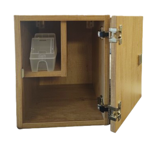 De medicijn- dossierkast is een individuele wandkast met vele mogelijkheden dat het opbergen van medicatie en een zorgdossier op de kamer overzichtelijk maakt. Door het gebruik van houtkleuren geeft dit kastje toch een huiselijke sfeer.