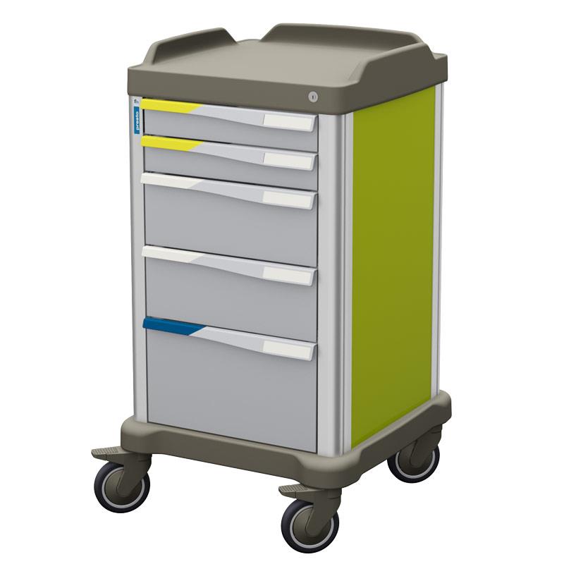De Presto verbandwagen is voorzien van een modulair ladesysteem met een maximum van negen lage lades. De lades hebben een handvat over de gehele breedte en zijn verkrijgbaar in vier verschillende hoogtes: 76, 156, 236 en 316 mm. De lades hebben een handvat over de gehele breedte. Zowel het brede werkvlak als de basis, inclusief bumper, is op innovatieve wijze gemaakt door het spuitgieten van PC/ABS kunststof. Deze verbandwagen is goed afsluitbaar door een centraal slotsysteem in standaard sleutelslotuitvoering of indien gewenst met een elektronisch (code)slotsysteem.