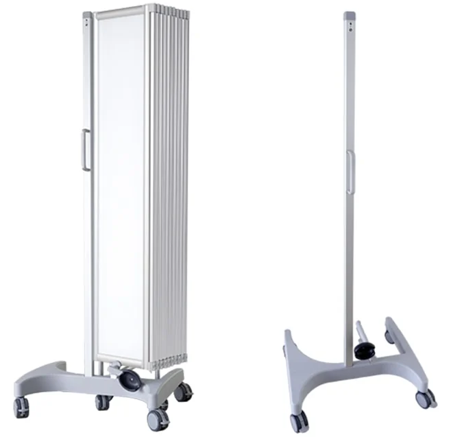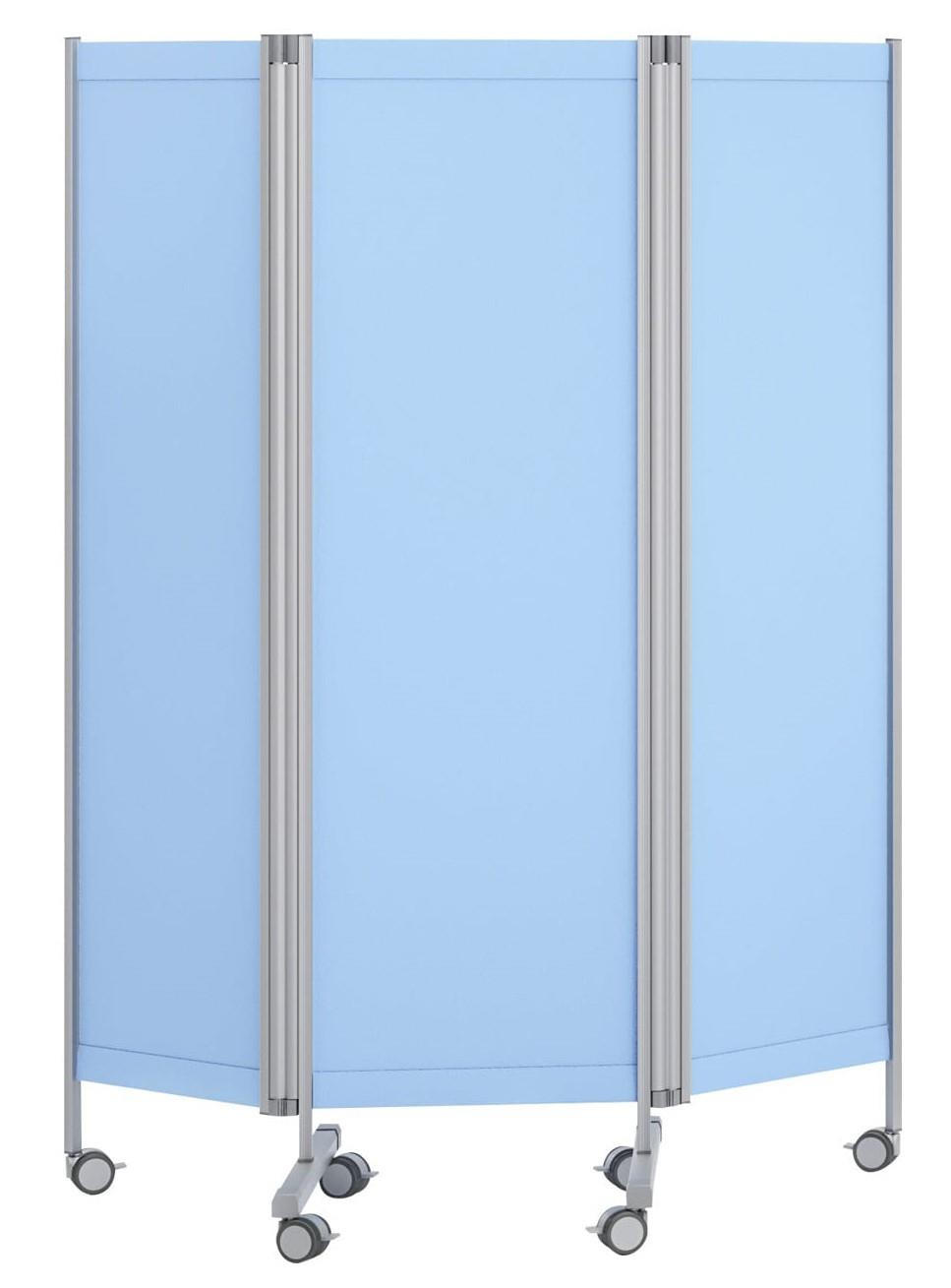 Deze vouwwand met wielen is ideaal voor mobiele afscherming van het voeteneinde van het bed of gynaecologische stoelen. VAB RM RBF is een 3-vleugelige vouwwand met een vleugel die midden op de dubbele kruisvoet geplaatst is en met aan beide kanten een vleugel die 360° kan worden gedraaid. De butterfly-vouwwand valt op door zijn gebruiksgemak. Met de 360° draaibare, ondoorzichtige scharnieren kunt u alle drie de vleugels in de gewenste positie brengen. Deze is verrijdbaar en ideaal voor het afschermen van het voeteneinde van het bed of gynaecologische stoelen.