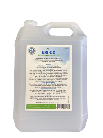 - Uri-Go Concentraat 1liter en 5 liter, ook geschikt om onverdund te gebruiken voor bijvoorbeeld stallen.
