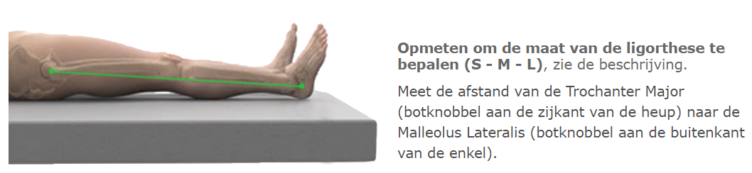 Bij de small-uitvoering van de FlexiOr® Comfort ligorthese liggen de hielen dankzij de robuuste vorm vrij van het kussen en wordt het scharen van benen voorkomen. Tevens past de vorm van de ligorthese zich aan de houding van de gebruiker aan. Deze uitvoering is het meest geschikt voor personen met een afstand van < 70 cm tussen de Trochanter Major en Malleolus Lateralis.