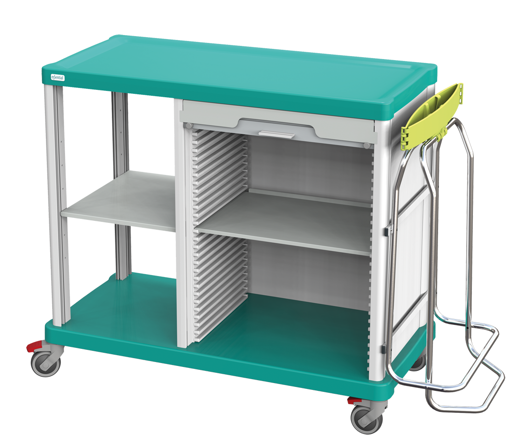 De Essential wagens hebben een geassembleerde structuur van aluminium. De achterzijde bestaat uit meerdere lagen aluminium-Polyethyleen-aluminium paneel en het brede werkvlak bestaat uit spuitgiet PC/ABS kunststof in een turquoise kleur. De wagens zijn aan drie zijdes voorzien van innovatieve duwhandvaten en hebben één interne plank van gelakt staal welke om de 80 mm in hoogte verstelbaar is.