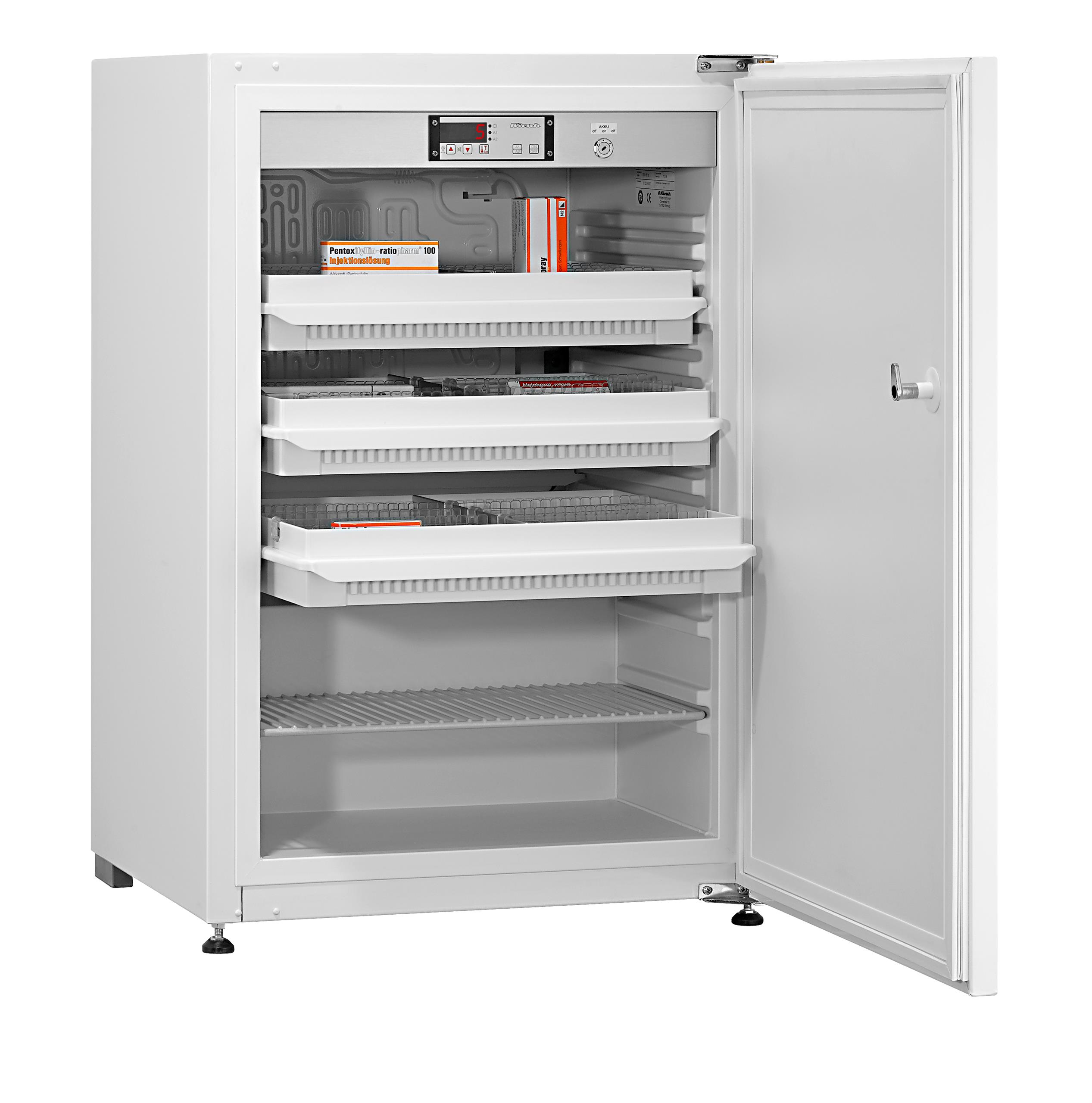 Voor de langdurige opslag adviseren wij u de medicijnkoelkast van het merk Kirsch. Deze farmaceutische koelkast wordt gebruikt voor de opslag van verschillende medicijnen die koel moeten worden bewaard. De Kirsch medicijnkoelkast wordt geleverd met uittrekbare lades en een rooster. De uittrekbare lades en rooster kunnen gemakkelijk op verschillende hoogtes worden geplaatst.